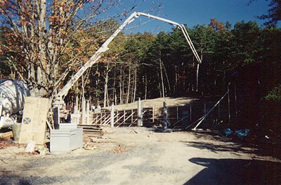 Pumping the concrete walls on a modified Corinthian now under construction in Central Virginia.