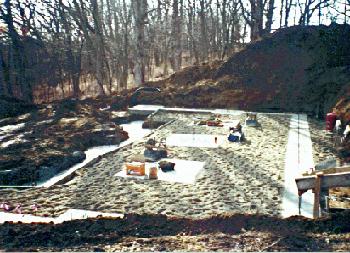 Partial footings and floor sub-base on a home recently completed near Armington, Illinois.